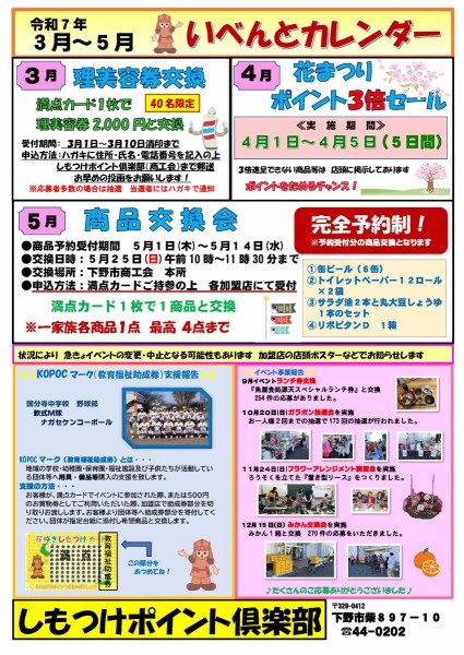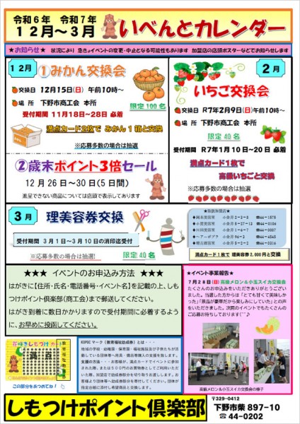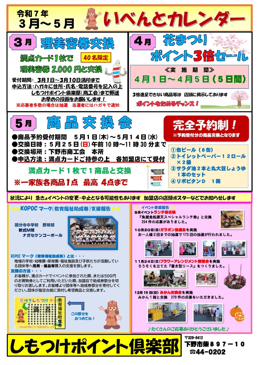 しもつけポイント俱楽部の「いべんとカレンダー(令和7年7月~令和7年9月)」を更新しました。